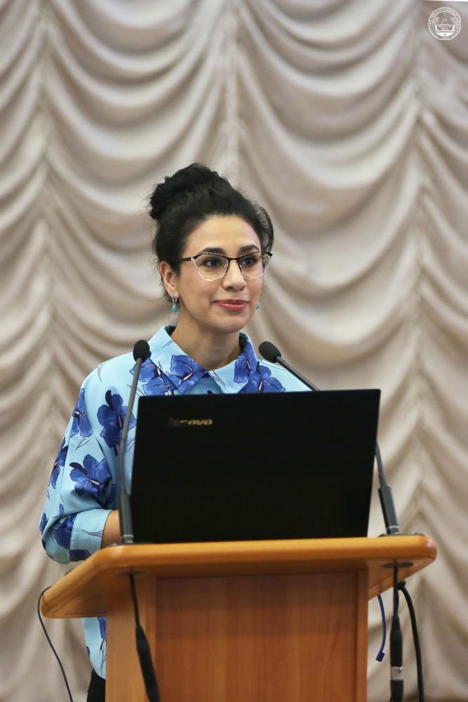После этого заместитель начальника управления по науке и инновациям СурГУ Арзу Насирова, которая выступила в роли модератора, объявила собственно о начале пленарного заседания конференции и предоставила слово проректору по науке и технологиям Ростиславу Яворскому. Тема его доклада была обозначена предельно ясно: «Роль науки в эпоху цифровизации». Однако уже у трибуны он вдруг признался, что решил несколько перестроить своё выступление, для того чтобы поддержать главную линию выступления ректора. Послав в зал риторический вопрос о том, чего старшее поколение ждёт от молодых учёных и студентов, он преподал присутствующим своеобразный маленький мастер-класс «Как выглядит учёный в XXI веке». По его словам, в этом «портрете» чрезвычайно важны три составляющие: кругозор, профессионализм и практическая польза от того дела, которым ты занимаешься. Сойдутся все три условия в одной точке — из тебя получится истинный учёный!