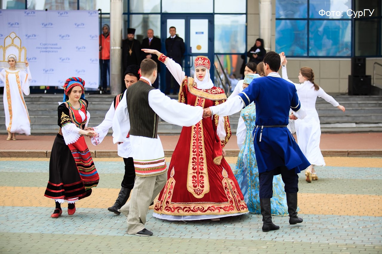 Началось все с митинга на площади перед главным корпусом. Холодная погода не испортила настроения. Студенты пришли в ветровках цвета своих институтов. Звучала народная музыка. Танцевальный ансамбль исполнил красивую композицию «Русь православная».