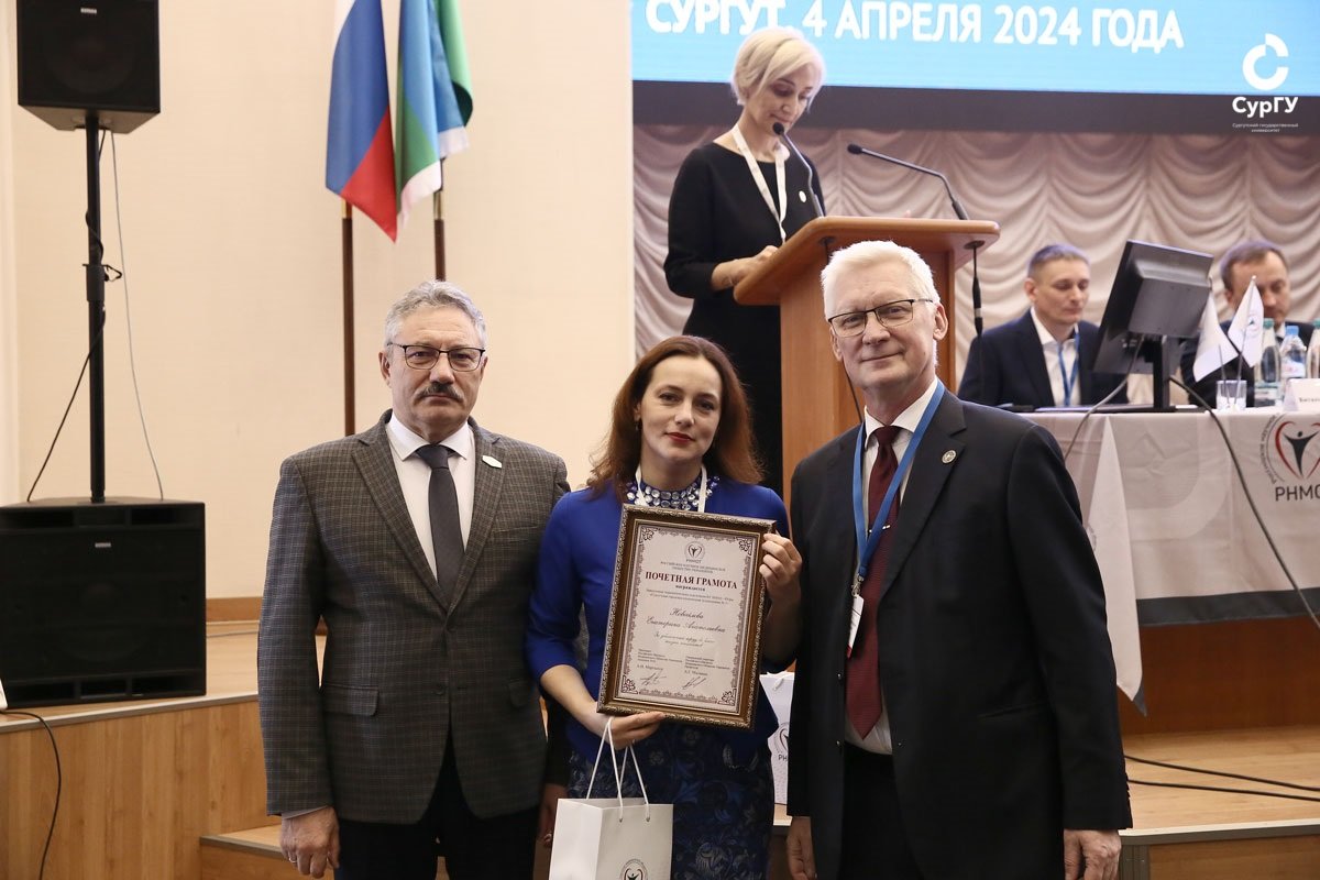 В рамках заседания состоялась церемония награждения врачей и сотрудников университета. За многолетний вклад в подготовку медицинских кадров почетной грамотой Российского научного медицинского общества терапевтов награждены доценты кафедры внутренних болезней Медицинского института СурГУ: Диана Вишняк, Анна Матвеева, Надежда Терентьева, Людмила Фроленкова и старший преподаватель кафедры внутренних болезней Ольга Шевченко.