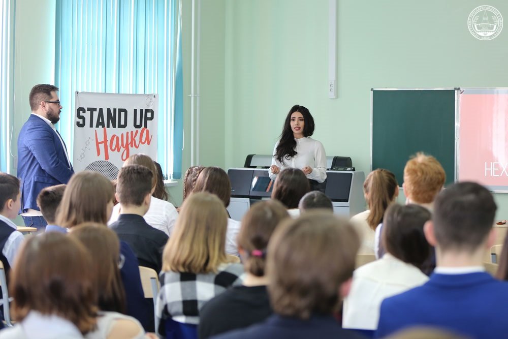 24 апреля участники проекта «Stand-Up Наука СурГУ» встретились с учащимися и учителями средней школы № 31 г. Сургута. Девиз этого проекта звучит так: «Научно – не значит скучно!» Студенты и преподаватели университета познакомили ребят с темами своих научных исследований. Так как проект «Stand-Up Наука СурГУ» нацелен на популяризацию науки, а основным правилом формата является краткость и простота, выступающие представили результаты своих научных изысканий в доступной и веселой форме. Каждое выступление сопровождалось интересными примерами, веселыми историями, шутками и обязательным интерактивом со зрителями.