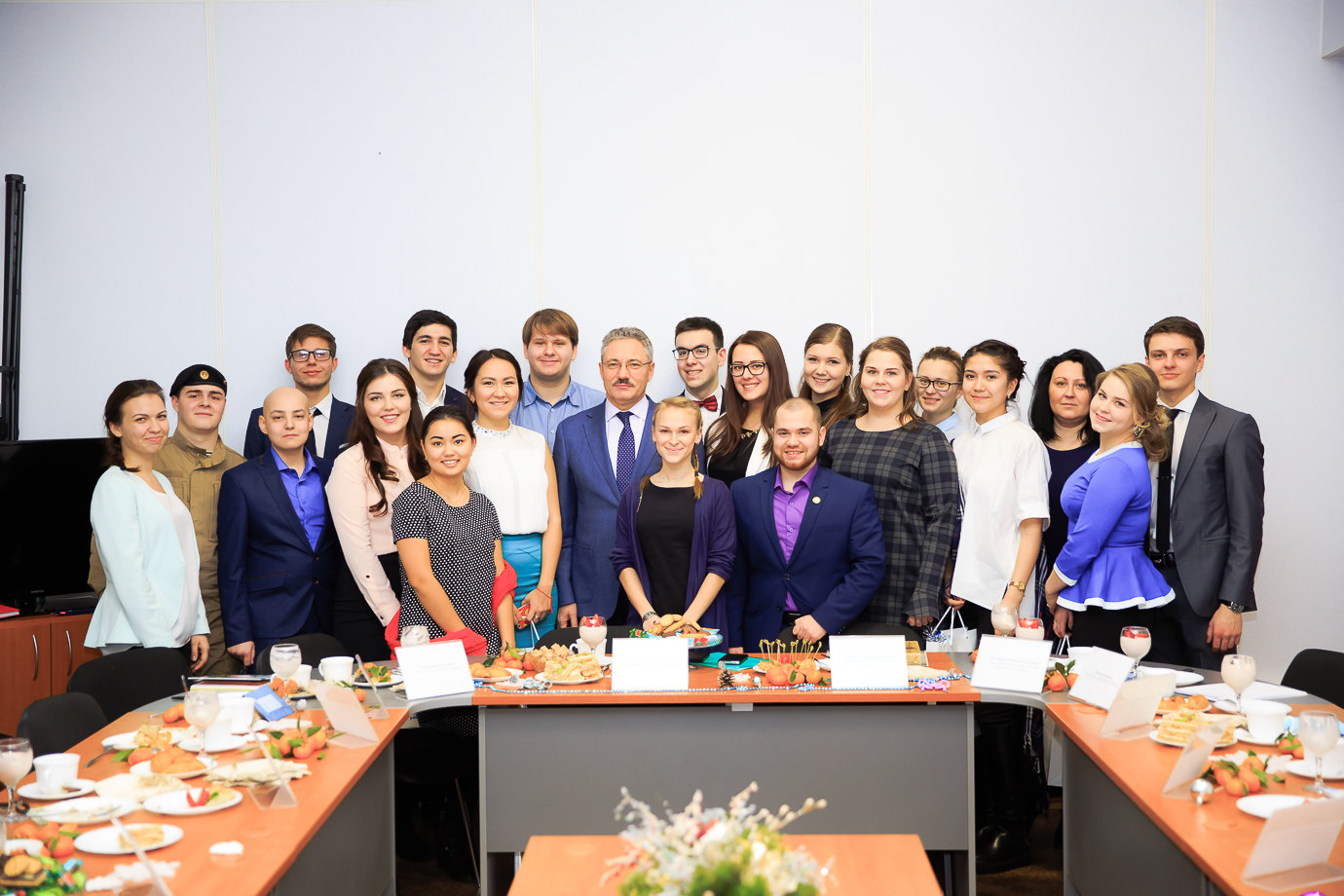 Ректор поблагодарил активистов за совместную работу, поздравил с наступающим Новым годом и вручил подарки. А потом была фотография на память и традиционное селфи от Айшат Нургишиевой, которое вскоре появилось «ВКонтакте».