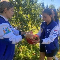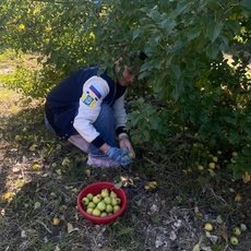 – На территории храма был огромный сад с яблонями и грушами, мы предложили свою помощь и собрали урожай всего лишь за два часа. В результате общими усилиями нам удалось собрать десять мешков фруктов, из которых сотрудники планировали сделать натуральные джемы и варенье к празднику. Кстати, деревья были настолько высокие, что дотянутся до них можно было, только проявив смекалку. Мы посадили тех, кто легче на шею, чтоб они растрясли дерево. Иногда яблоки сыпались прямо нам на голову, как Исааку Ньютону, открывшему закон всемирного тяготения. Было весело и интересно. За наш труд нам вручили гостинцы – два больших пакета яблок и груш, и провели экскурсию по храму. Знаете, я крайне редко бываю в церквях, но на Алтае совсем другая атмосфера, это место силы и веры, – делится впечатлениями четверокурсник Института экономики и управления Владислав Халитов.