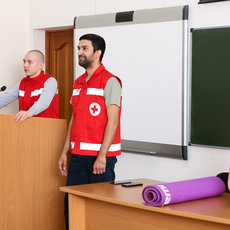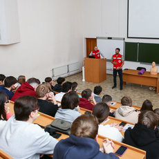 Занятие состояло из теоретической и практической части. Теоретическая была сосредоточена вокруг оказания первой медицинской помощи пострадавшим при пожаре. Студентам напомнили о правилах оказания сердечно-легочной реанимации, а также о том, что можно и чего нельзя делать при термических ожогах. Проводили мастер-класс по первой помощи представители регионального отделения Российского красного креста.
