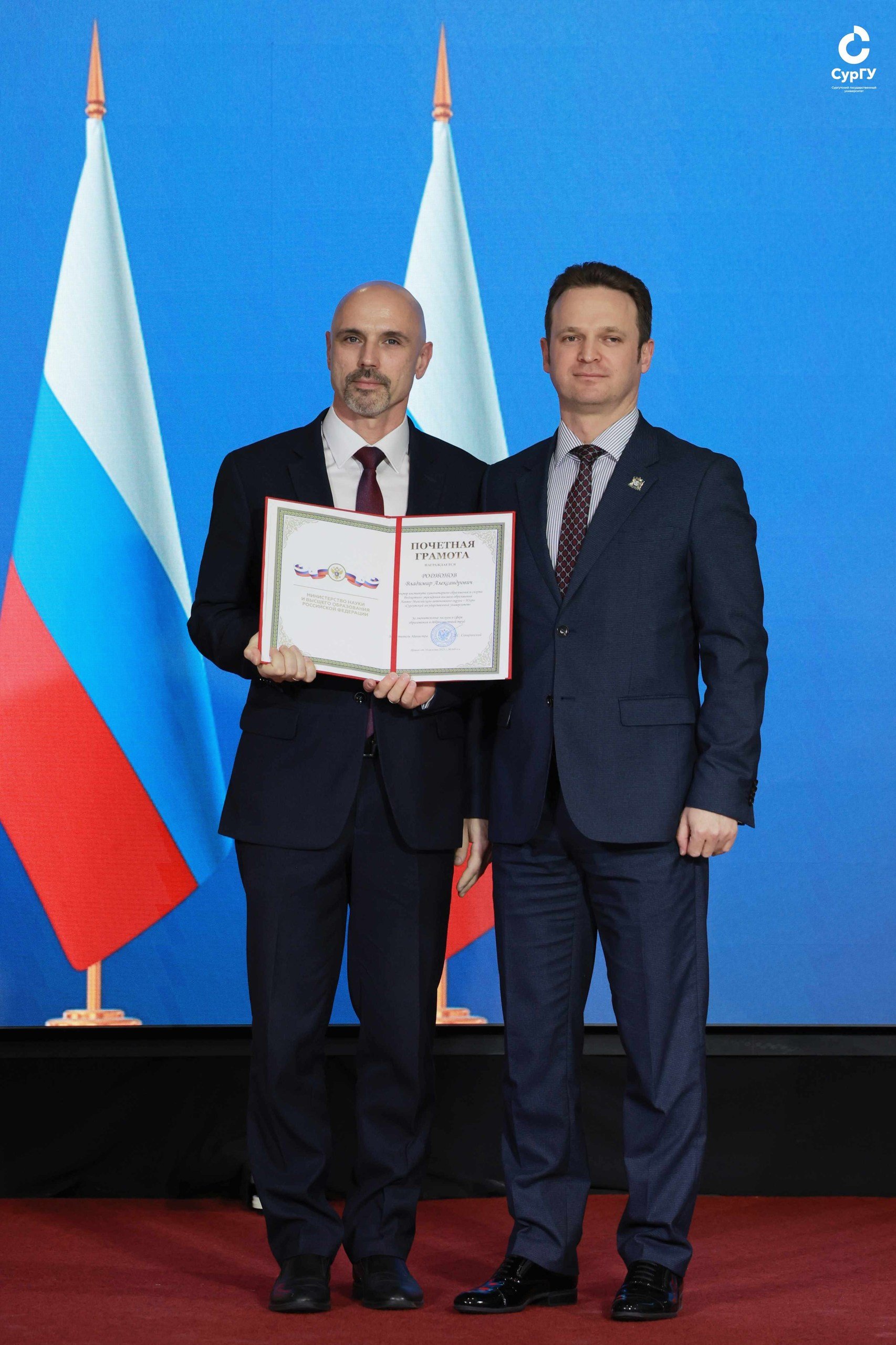 С благодарностью за ответственный труд поздравляю Ларису Александровну Попову, директора Института государства и права; Елену Александровну Абросимовскую, заместителя директора Института среднего медицинского образования; Владимира Александровича Родионова, директора Института гуманитарного образования и спорта; Андрея Александровича Теплякова, заведующего кафедрой детских болезней Медицинского института, с наградами Министерства науки и высшего образования Российской Федерации.