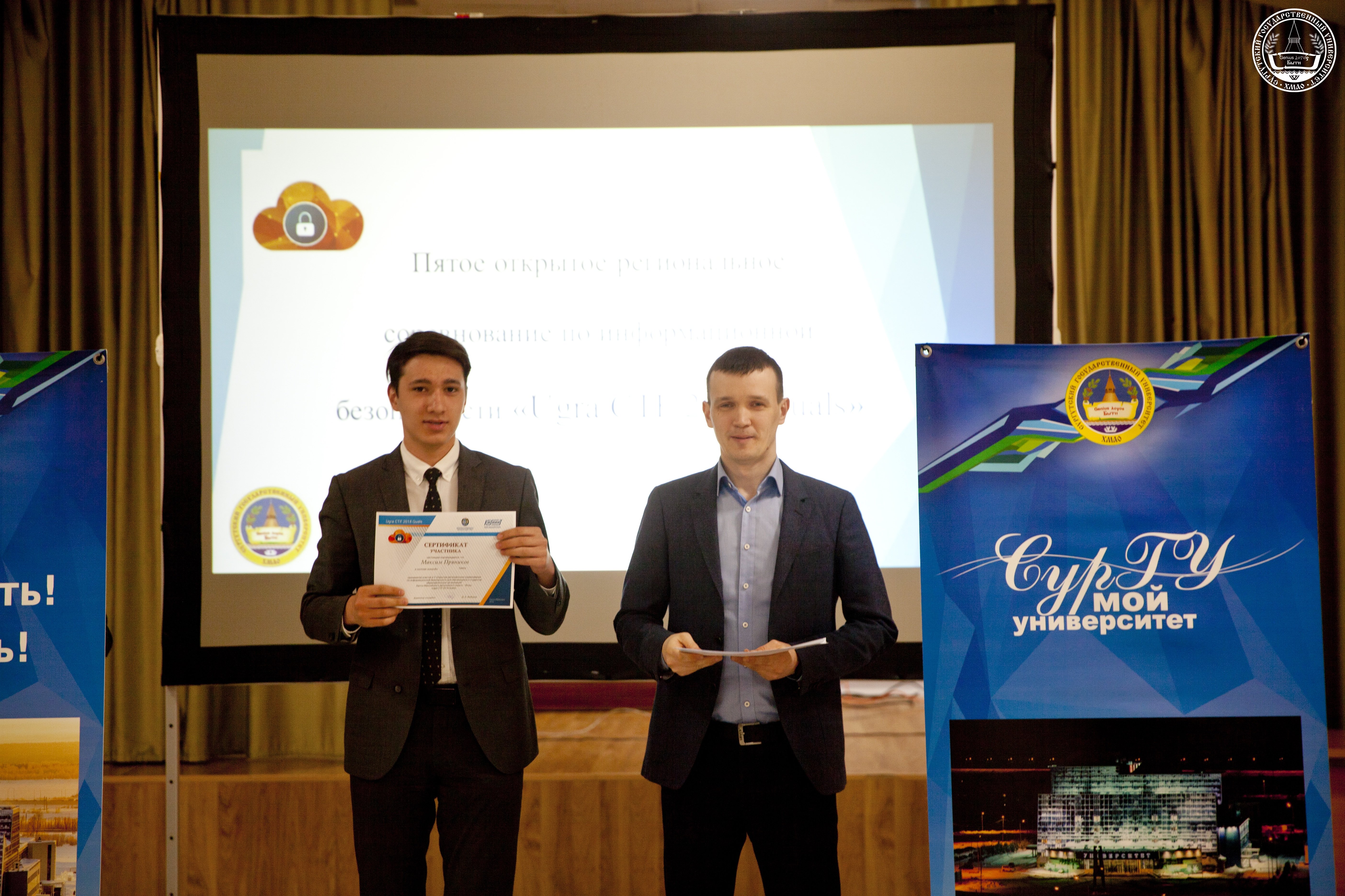 По результатам соревнований, которые длились весь рабочий день, победителями стали: среди студентов СурГУ — I место заняли Евгений Живайкин и Артур Валиев (команда LastHopeGateway), на II месте — Никита Новичков и Дмитрий Хадасевич (команда ХАОС ИНСЕРДЖЕНСИ), на почетном III месте разместились Антон Мигунов и Иван Пиянзин (команда ANIME DYNASTY). Кстати, в округе по общекомандному зачету ребятам из Сургутского госуниверситета направления «Информационные системы и технологии» также не было равных. Набрав 975 баллов, они уверенно завоевали первые строчки регионального чемпионата.